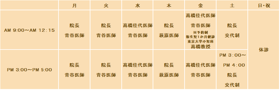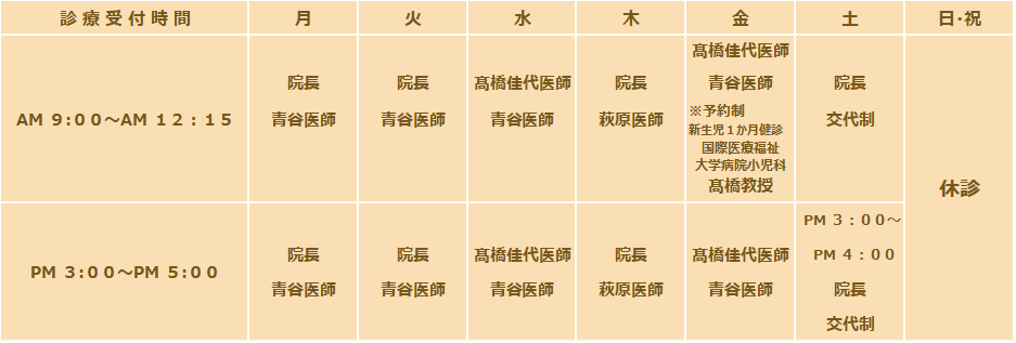 ※診療担当医は、急遽変更となる場合があります。ご了承下さい。
